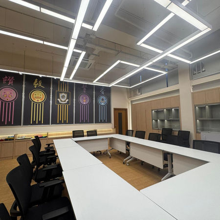 會議室設計融合科技與舒適性,配備高清顯示設備、智能燈光及聲音控制系統,提升會議效率和參與體驗。空間布局簡潔大方,使用隔音材料確保私密性,同時設有靈活的座位安排,適合各種規模的會議需求,打造專業而高效的交流環境。